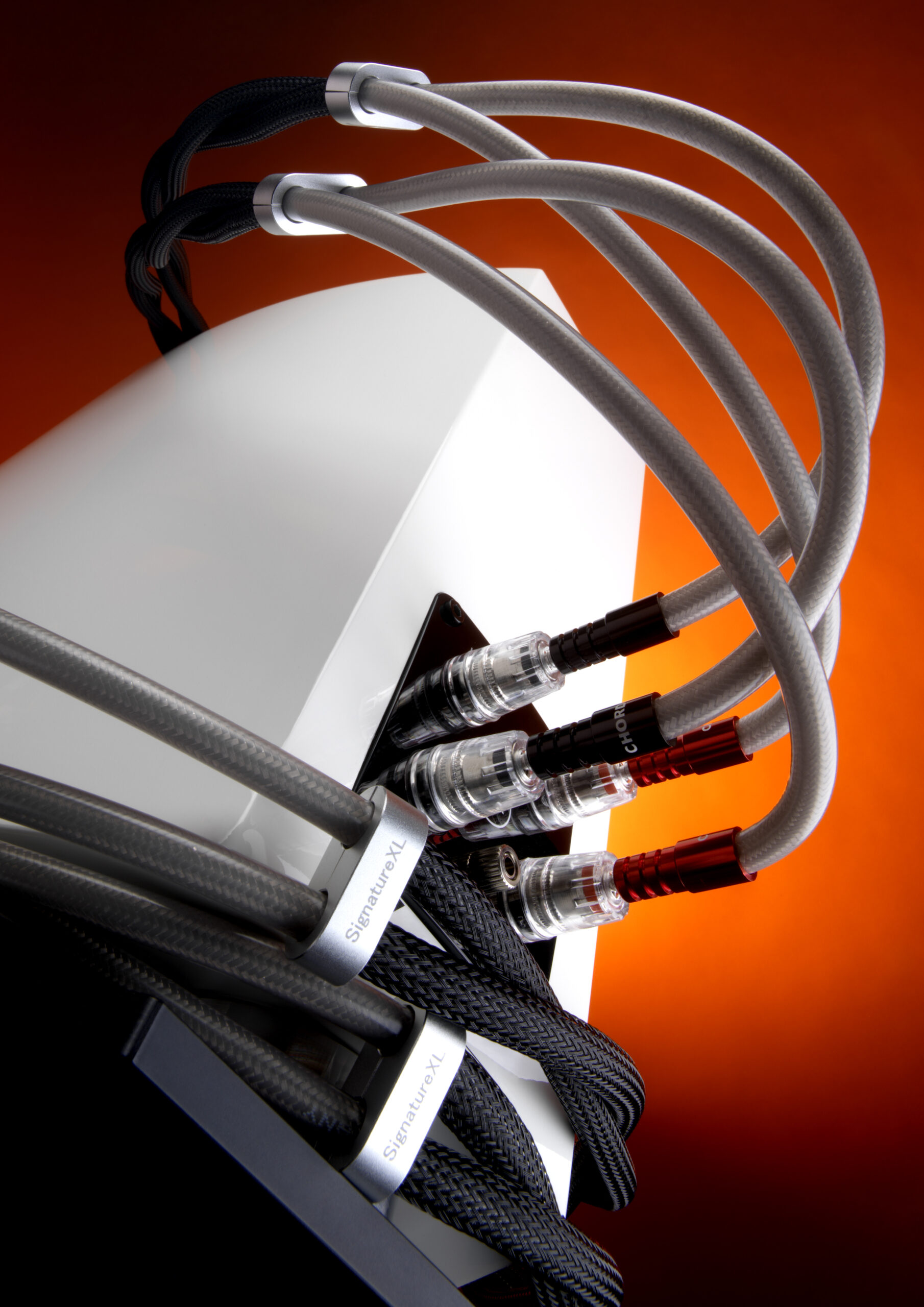 De Chord Company SignatureXL is de nieuwste versie van een van de langstlopende producten. De originele Signature was onze eerste hoogfrequente afgeschermde luidsprekerkabel (2004) en betekende een enorme sprong voorwaarts in de prestaties van luidsprekerkabels. Het was ook de grootste, stijfste en helderste kabel die we ooit hadden gemaakt. De geleiders waren van zuurstofvrij koper, de isolatie van gasgeschuimd polyethyleen. De afscherming was een drielaagse vlecht- en foliecombinatie, effectief bij hoge frequenties en de buitenmantel van flexibel polyethyleen. Het was net flexibel genoeg om in een systeem te passen. Er was geen persbericht of recensie voor nodig, het ging zo snel via mond-tot-mondreclame, dat er een tijdje bijna een permanente wachtlijst bestond. Het bleef ongeveer tien jaar onveranderd, totdat we verbeterde bouwtechnieken en materialen konden toepassen, zoals efficiëntere afscherming, verzilverde geleiders en PTFE-isolatie, die een neutraler tonaal karakter zouden produceren en een kabel die beter in staat was details, dynamiek en klankkleur over te brengen. De Signature Reference maakte, zoals de meeste van de Chord Company kabels, gebruik van PTFE-isolatie (vaak Teflon genoemd) en was tot de komst van Taylon ons “go to”-materiaal. Hoewel duur, bood het de beste prestaties.