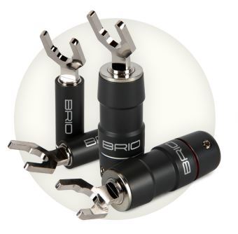 De volledige connector is gefreesd uit één stuk tellurium koper en vervolgens van een laagje rodium voorzien. De signaalverbinding van de Brio Banana connector kan naar keuze met een dubbele schroefverbinding en/of door soldering worden gemaakt op de luidsprekerkabel. Een schroefbare messing behuizing voor kabels met een diameter tot maximaal 11,6 mm wordt bijgeleverd.