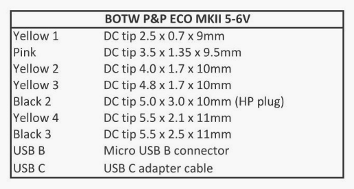 - 1x DC tip 5.0 x 3.0 x 10mm (HP plug)