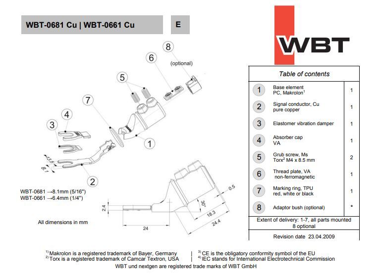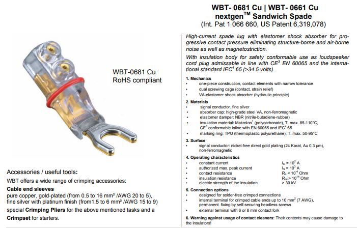 WBT-0681 CU (koper) – Sandwich spade 8,0 mm max. 10 mm² 7 AWG per 4 stuks in showcase